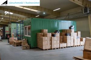 - Hala magazynowa, antresola, pomieszczenie biurowe, kuchnia, łazienki, toalety, szatnia oraz wewnętrzna kotłownia CO